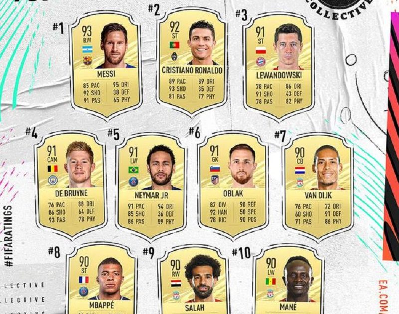 北京时间9月10日消息,EA公布了FIFA21能力值前十的球员,梅西蝉联榜首,第二名依然是C罗,而第三名变成了莱万。